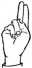 На ћирилици написано ПАУН ДЕНИЋ састоји се из 9 слова [?]. Исписано ћириличном једноручном азбуком за глувонеме: